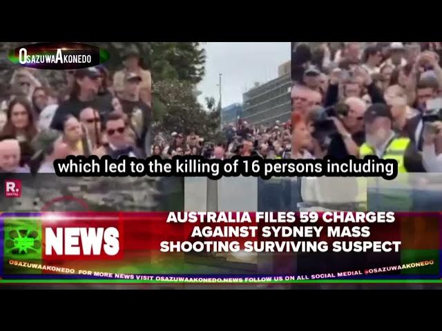 #Breaking News #Australia #BondiBeach #NSW #Sydney ©December 17th, 2025 ®December 17, 2025 10:31 am Australia Government on Wednesday filed 59 charges against the only surviving suspect, Naveed Akram who is one of the suspected persons allegedly responsible for the mass shooting at Bondi Beach in the city of Sydney targeting Jewish people on the Jews first day to mark this year Hanukkah festival which led to the killing of 16 persons including a married couple who were said initially tried to disarm one of the attackers before the husband and wife were killed, children aged 10 and above and the suspect father and co perpetrator, Sajid Akram who was killed on the spot by the police, and 41 others including police officers and the bystander, Ahmed al Ahmed who disarmed the 50 years old one of the gunmen, some of the 20 of the injured persons are still in critical condition in the hospital based on statement issued on Wednesday by local authority in Sydney, this, according to the New South Wales Police Force in a statement published on its website on Wednesday, the suspect was brought before the court "following extensive inquiries under Operation Arques, today Wednesday 17 December, (New South Wales Joint Counter Terrorism Team), JCTT investigators attended a hospital where they charged a 24-year-old Bonnyrigg man with 59 offences, including: Commit terrorist act, 15 counts of murder, 40 counts of cause wounding/grievous bodily harm to person with intent to murder, Discharge firearm intend cause grievous bodily harm, Cause public display of prohibited terrorist organisation symbol, place explosive in/near building with intent cause harm", and the court adjourned the case to April 2026 after the suspect made first appearance from his hospital bed before the Bail Division Local Court 7 via Audio Visual Link, AVL #OsazuwaAkonedo